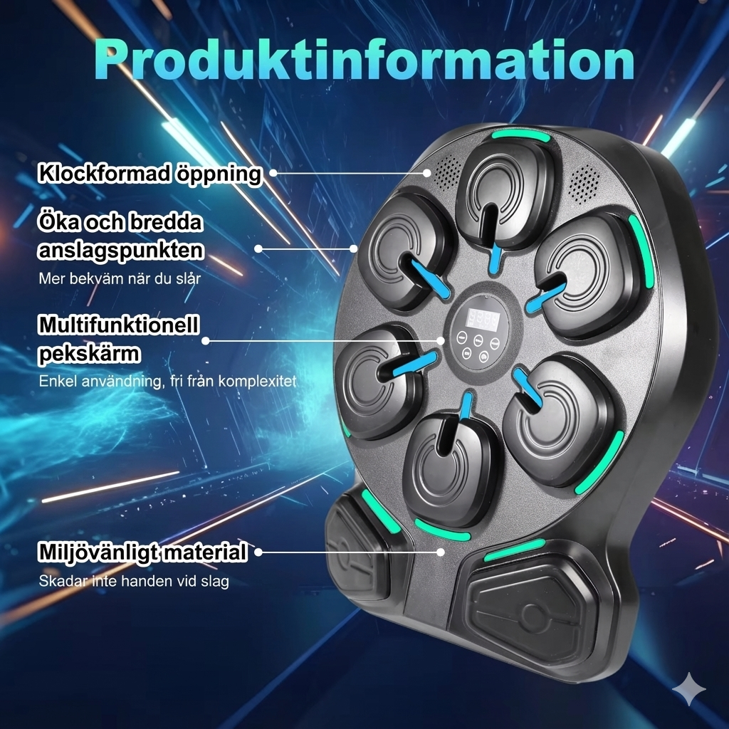 Upplev framtiden av träning med denna smarta, väggmonterade boxningstränare. Koppla upp till din favoritmusik och gör varje träningspass en energikick som kombinerar fitness och nöje.